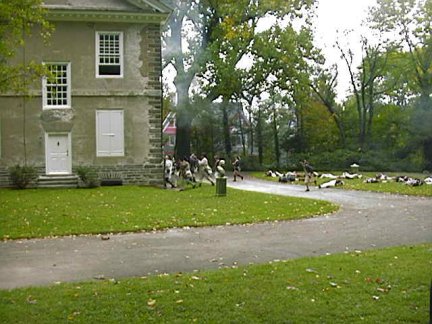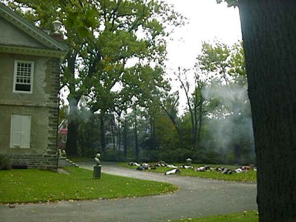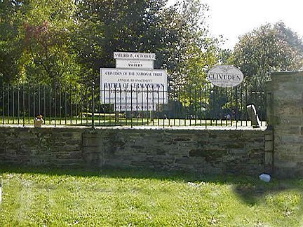Advancing American Soldiers on the Germantown Road encountered a British outpost in nearby Mt.Airy. A burst of artillery fire from the alarm cannons alerted British Colonel Thomas Musgrave and the 40th Regiment, who were camped in the fields around Cliveden (the ten year old summer home of Justice Benjamin Chew). The 40th Regiment having been forewarned had time to barricade themselves inside the stone walls of Cliveden, from where they could fire on the advancing American troops.